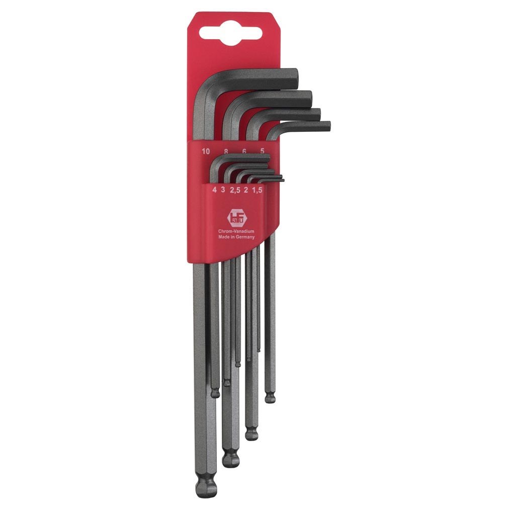 HAFU kuusiokoloavainsarja, pallopää, CHR-VA, pitkä. 9-osainen, sisältää koot 1,5-2-2,5-3-4-5-6-8-10.