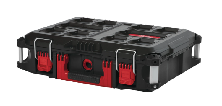 Milwaukee PACKOUT laatikko. Osa PACKOUT-säilytysjärjestelmää. Valmistettu iskunkestävästä polymeerista, mikä parantaa kestävyyttä työmaalla. IP65-luokiteltu sääsinetti suojaa sateelta ja työmaaroskalta. Metallivahvisteiset kulmat ja lukko.