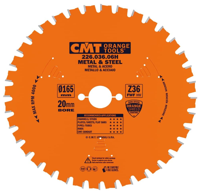 Pyörösahanterä Dry-Cut metalli, 165x20 mm T36