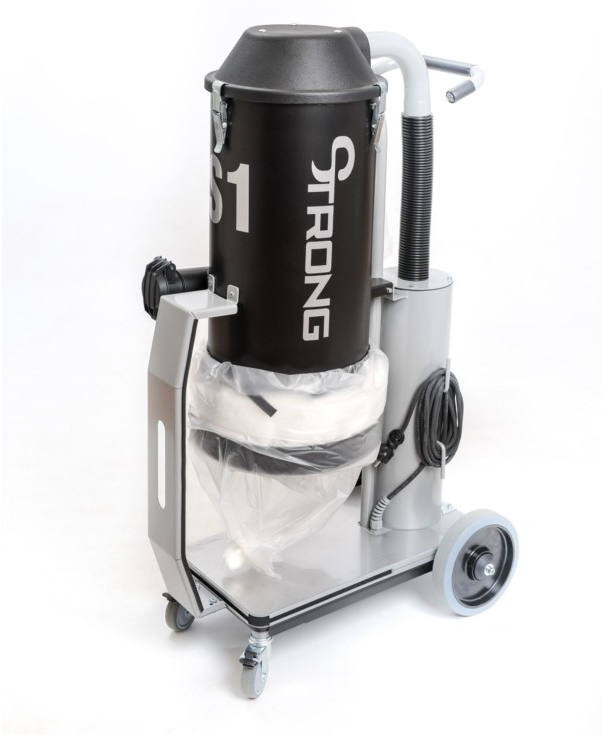 Strong S1 rakennusimuri. 1-moottorinen syklooni-imuri. Teho 1,25kW. Paine 25kPa. Suodatusluokka HEPA H13, 99,95%.