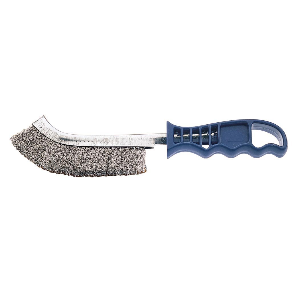 FECIN teräsharja ruostumaton 1-riv, muovikahva. Soveltuu kaikkien pinttymien, maalien ja ruosteen puhdistamiseen.