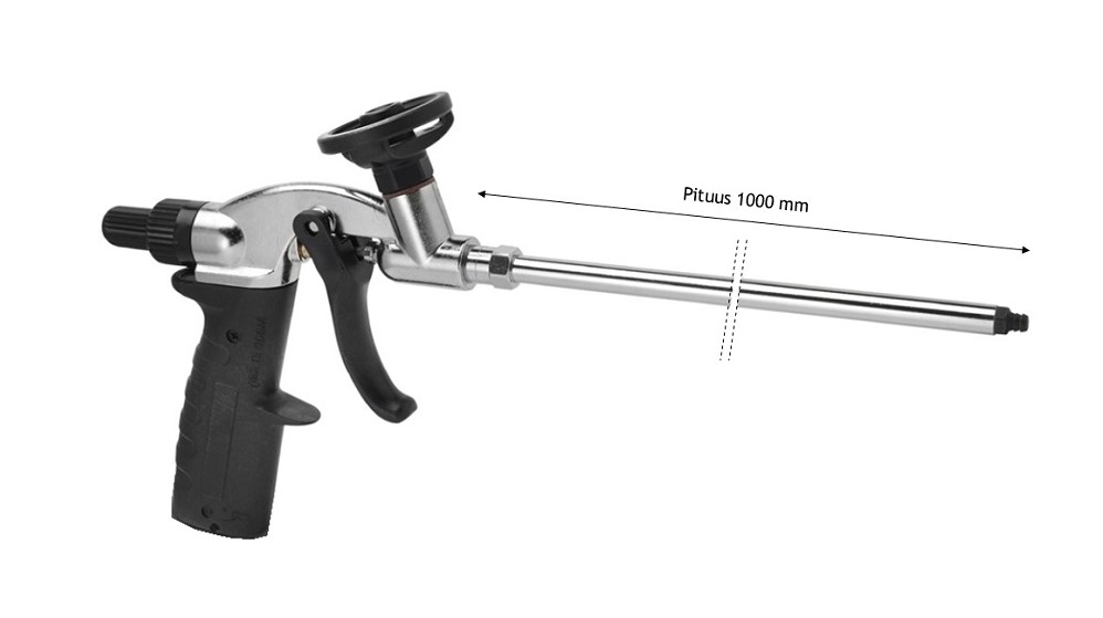 Korkeatasoinen ja erittäin kestävä vaahtopistooli jatkuvaan ammattikäyttöön. Varustettu 1000 mm pitkällä metallisuuttimella. Tarkka ja nopea pursotusnopeuden säätö.