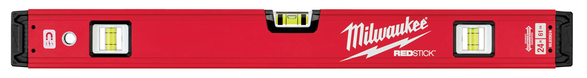 Milwaukee vesivaaka Redstick Backbone. Täysmetallinen, jossa on vahva ja kestävä runko sekä vahvistetut libellit. Leveät ja kestävät kahvat. Tarkat mittamerkinnät takaavat tarkkuuden kaikissa työskentelyasennoissa. Iskunkestävät päätytulpat. Tarkkuus 0,029° (0,0005 "/in, 0,5 mm/m) normaalissa ja käänteisessä asennossa. Vahvat maametallimagneetit kiinnittyvät voimakkaasti.