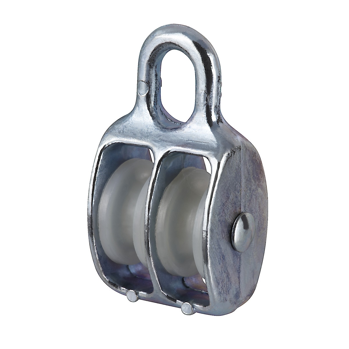 Pylpyrä/väkipyörä, 2-kehräinen, kehrä nailonia, soveltuu käytettäväksi keinokuituköysillä