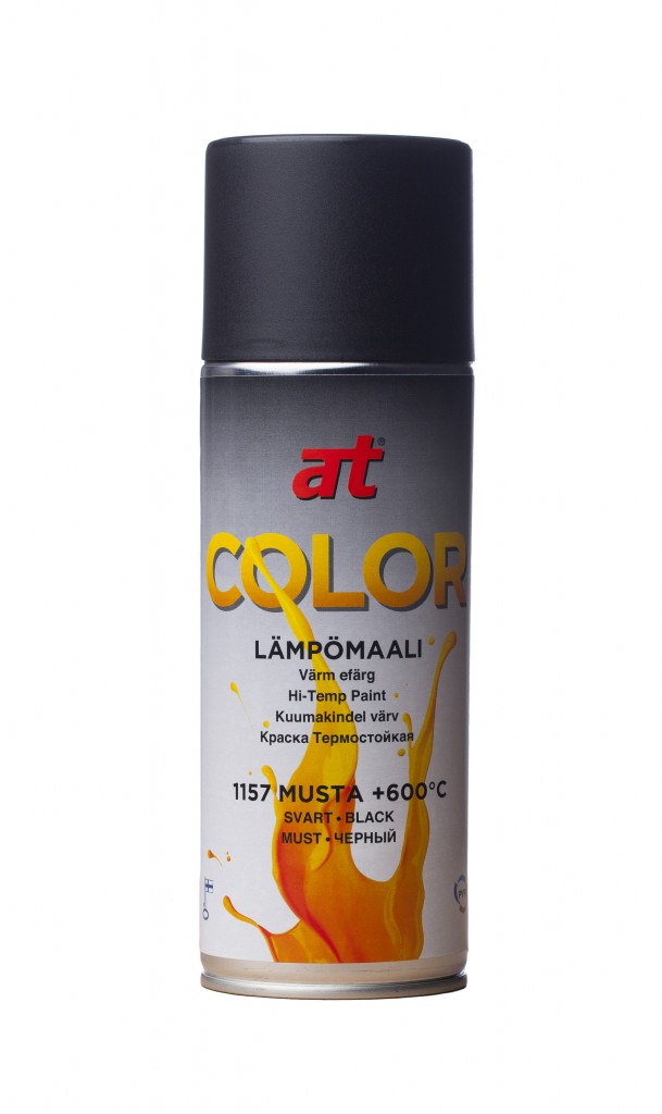 AT lämpömaali musta. Soveltuu metalli -ja puupinnoille. Maalattavan pinnan tulee olla puhdas, kuiva ja huoneenlämpöinen.