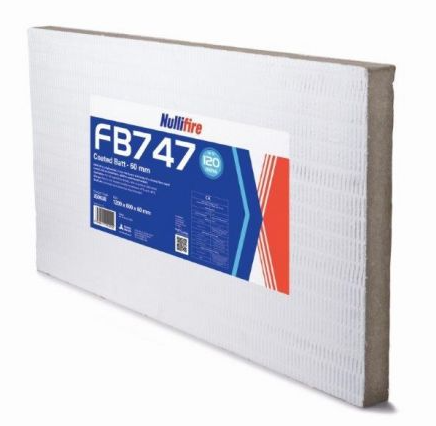 Nullifire FB747-50 palosuojalevy, 1200x600x50. Erikoispinnoitettu kivivilla. Käytetään kaapeleiden, metalli- ja muoviputkien läpivienneissä sekä kaapelihyllyissä ja johtokanavissa.