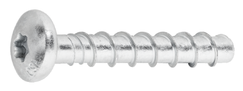 Betoniruuvi, matalakanta. Haponkestävä TORX. ETA. Reikä 6 mm poralla.