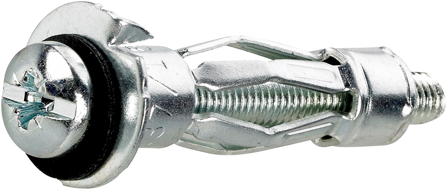 Levyankkuri, metalli. Täysmetallinen kiinnike kuormien kiinnittämiseen levy- ja koteloseiniin. Kiinnikkeen siivekkeet levittäytyvät tukevasti ohutlevyn, kuten kipsilevyn, sisäpintaa vasten.... Lue lisää