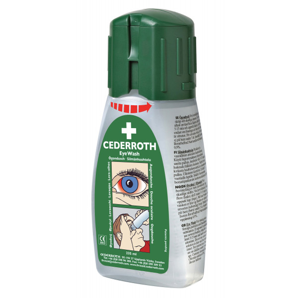 Henkilökohtainen silmänhuuhtelupullo, joka on helppo pitää mukana taskussa tai vyökotelossa. Pullo sisältää steriiliä, puskuroitua ja säilöntäaineetonta keittosuolaliuosta.