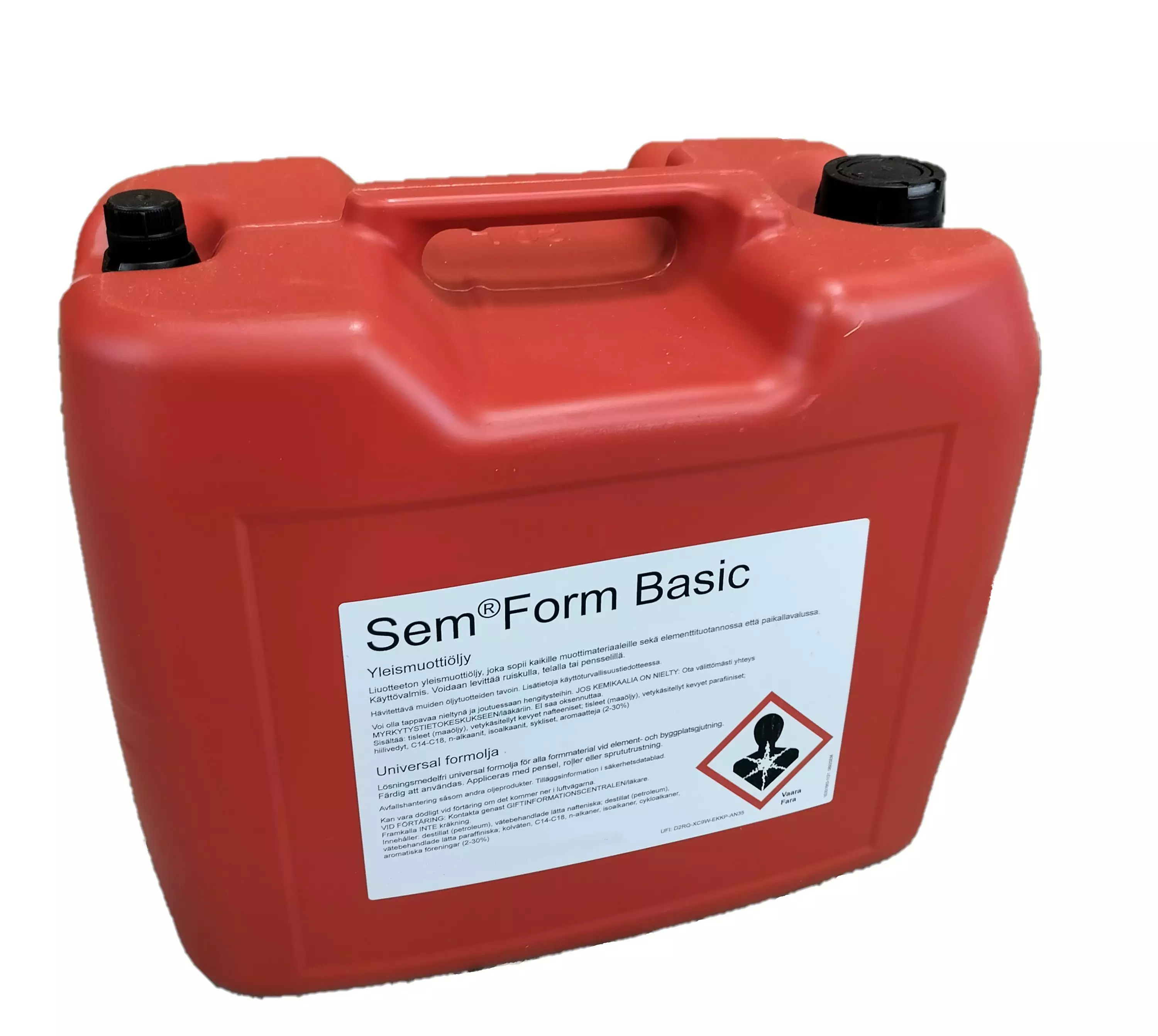 Sem Form Basic yleismuottiöljy. Öljypohjainen, liuotteeton muotinirroitusaine betoniteollisuuteen. Soveltuu lähes jokaiseen käyttökohteeseen. Soveltuu myös talvikäyttöön.