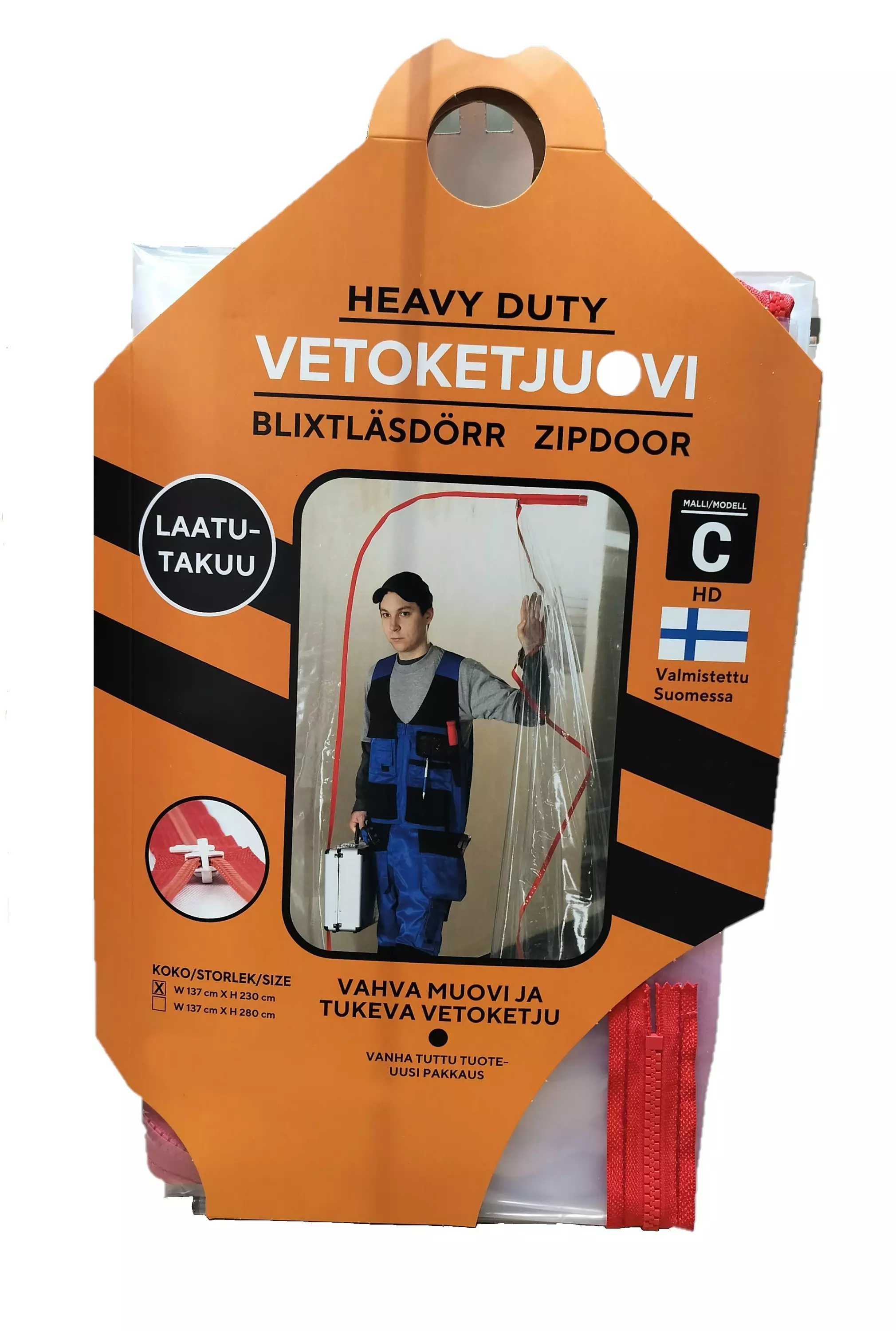 Vetoketjuovi-PVC malli C on oviaukkoon asennettava väliaikainen muoviseinä, joka estää pölyn leviämisen. Helppo ja nopea ratkaisu erilaisissa saneeraus- ja rakennuskohteissa, avattava ja suljettava väliaikainen muoviseinä helpottaa liikkumista työmaalla ja samalla se estää tehokkaasti ilmavirtaukset ja rakennuspölyn leviämisen.