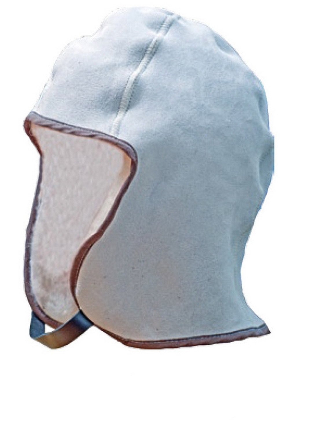 Kypäränalus huppu kotimaisesta lampaannahasta. Ohuet saumat ei paina kypärän alla, pinta haljasnahkaa. Turkis vuori.