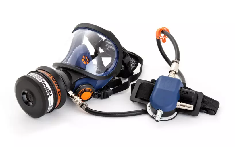 Mukana tulee kokonaamari, paineilmalaite, vyö, säätöventtiili, virtausmittari ja varoituspilli ilmavirtauksen väliaikaiseen ja jatkuvaan seurantaan.