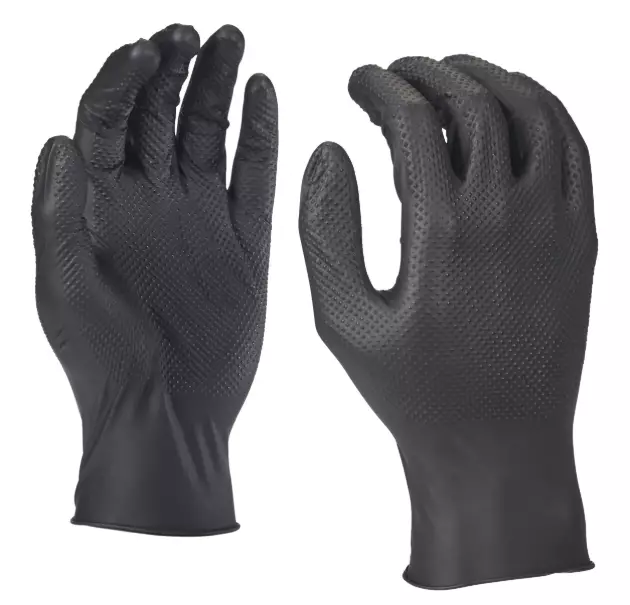 Milwaukee kertakäyttöinen nitriilikäsine. Kestävät kertakäyttöiset nitriilikäsineet, joiden 0,2 mm:n paksuus ja 8,0 gr:n paino vähentävät käsineiden repeytymistä. Karhennettu pinta parantaa pitoa metallityökaluja käsiteltäessä tai öljyisillä ja rasvaisilla pinnoilla. Kemikaaleja kestävä materiaali suojaa käsiä öljyiltä, bensiiniltä, ohenteilta, jarrunesteiltä ja autokorjaamoissa yleisesti käytetyiltä liuottimilta. Käsineillä on helppo käsitellä pieniä tavaroita ja tunnustella työpintaa. SmartSwipe mahdollistaa älylaitteiden kosketusäytön käytön käsineet kädessä.