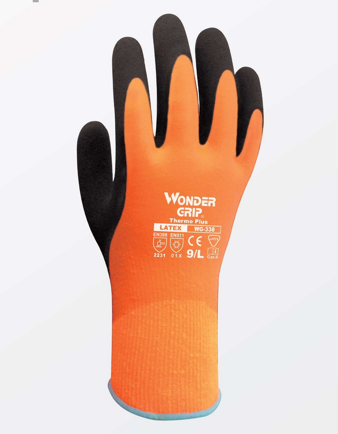 WG-338 Thermo Plus on kaksinkertaisella lateksipinnoitteella kokonaan päällystetty käsine. Wonder Grip Technology™-pinnoitteen ansiosta käyttäjä saa hyvän otteen ja suojauksen kuivassa ja märässä ympäristössä. WG-338 on suunniteltu tarjoamaan kaksoissuojaus: kylmäsuojaus ja 100 % vesitiiviys.